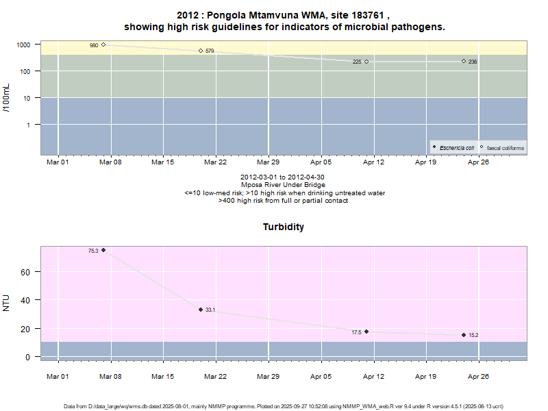 Risk based on E. coli if recorded, otherwise on faecal coliforms | ||||