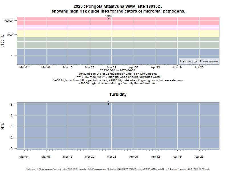 Risk based on E. coli if recorded, otherwise on faecal coliforms | ||||