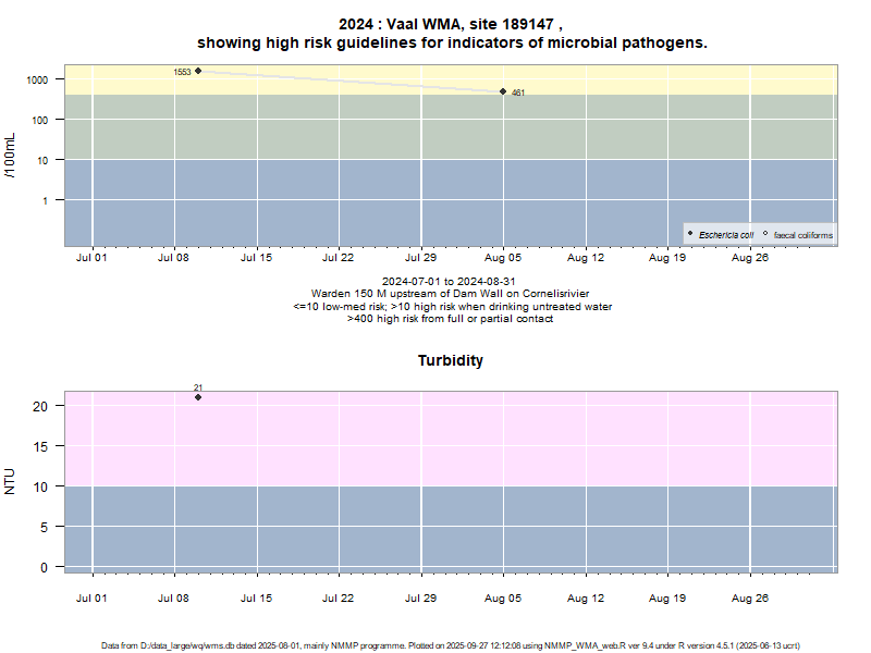 Risk based on E. coli if recorded, otherwise on faecal coliforms | ||||