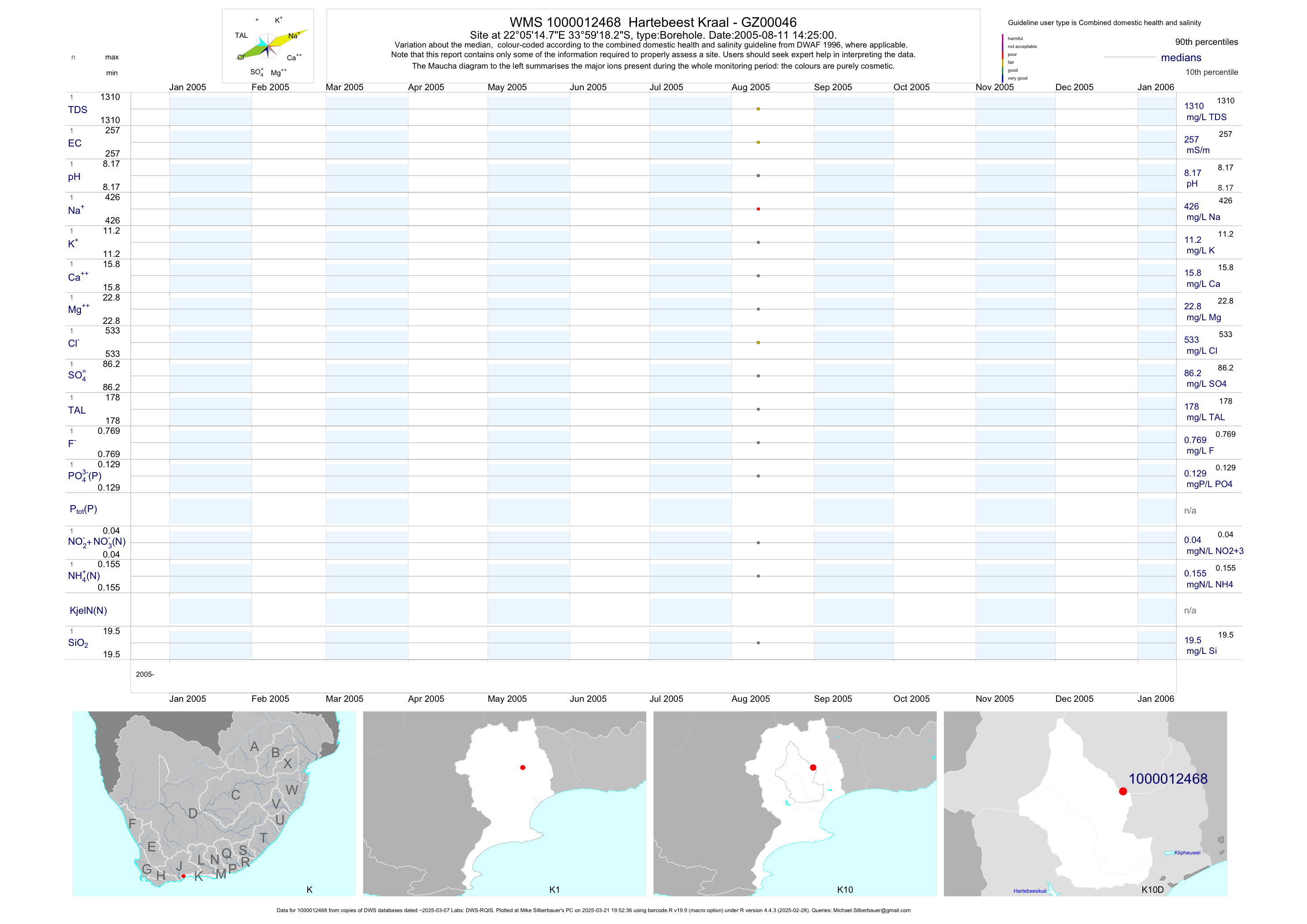 | K10 1000012510 | plot | data | Mosselbaai Town - GZ00074 | Borehole | 2 | 2005-08-16 | 2005-08-16 | 272 | 1-12510 | -34.18958 | 22.12633 |