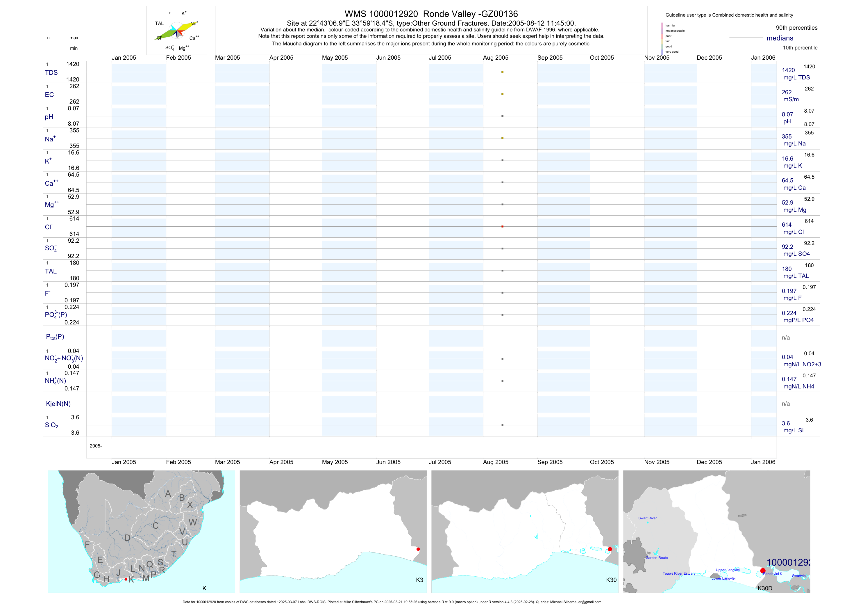 | K40 1000013002 | plot | data | Ronde Valley | Borehole | 1 | 2005-08-12 | 2005-08-12 | n/a | 6 | -33.97800 | 22.71367 |