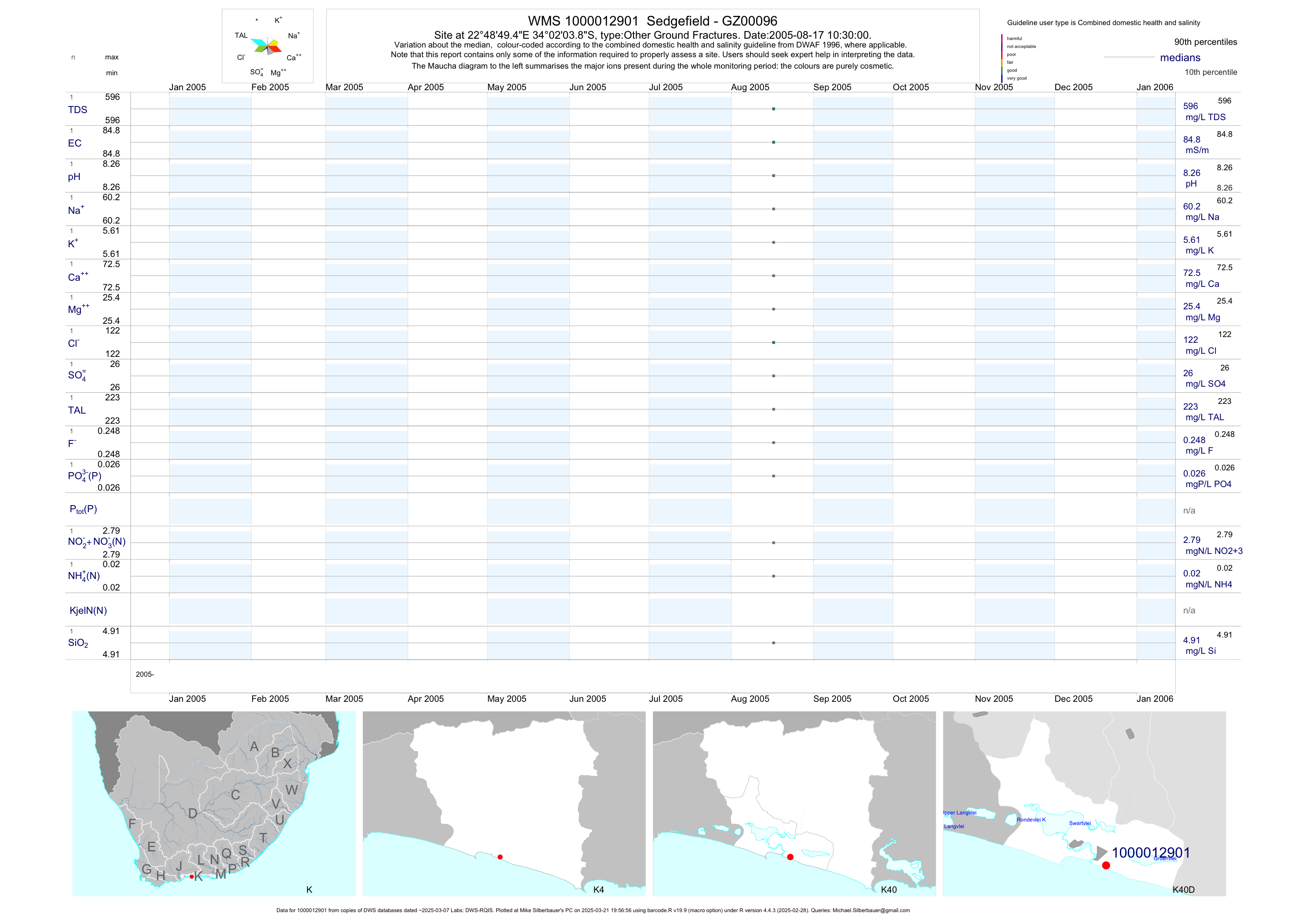 | K90 90062 | plot | data | 3324CD00037 Kareedouw North - KW1 (N_GW) | Borehole | 54 | 1994-10-19 | 2018-04-17 | 44 | ZQMKWN1 | -33.95583 | 24.29556 |