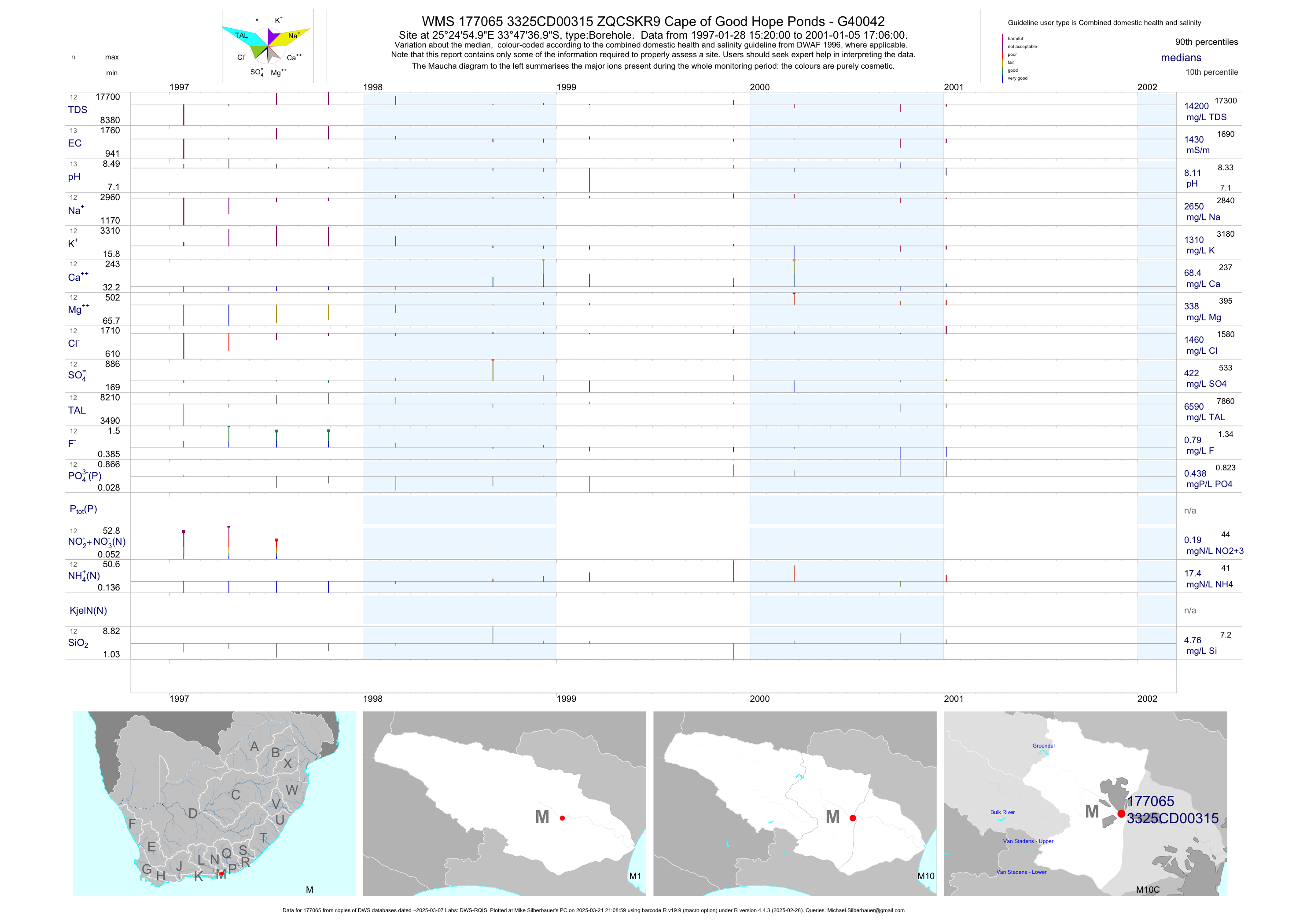 | M10 177065 | plot | data | ZQCSKR9 Cape of Good Hope Ponds - G40042 | Borehole | 26 | 1997-01-28 | 2001-01-05 | 1435 | 315 | -33.79361 | 25.41528 |