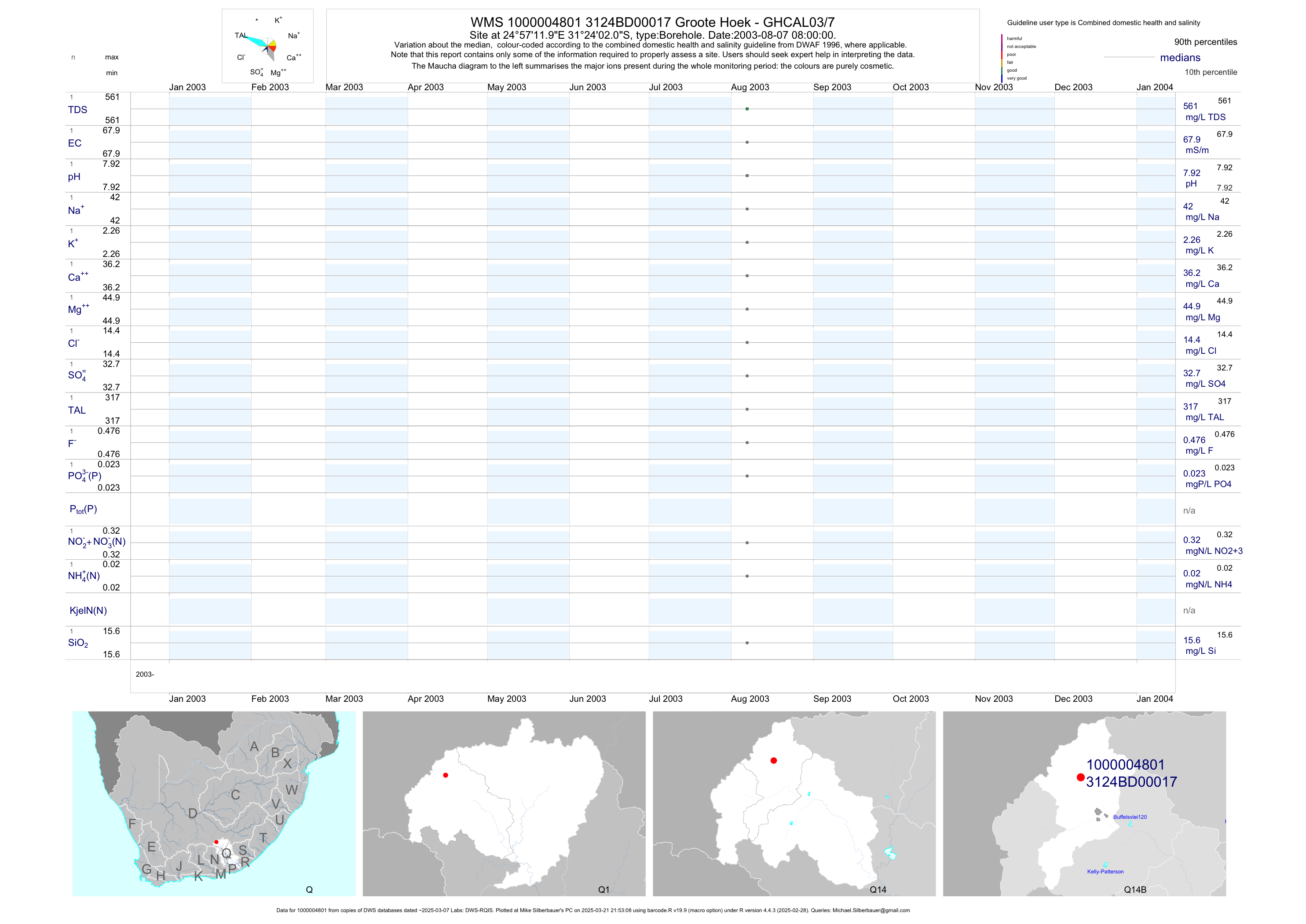 | Q14 1000004809 | plot | data | Grootfontein - GHCAL03/15 | Borehole | 1 | 2003-08-08 | 2003-08-08 | 92 | 160 | -31.46195 | 25.01917 |