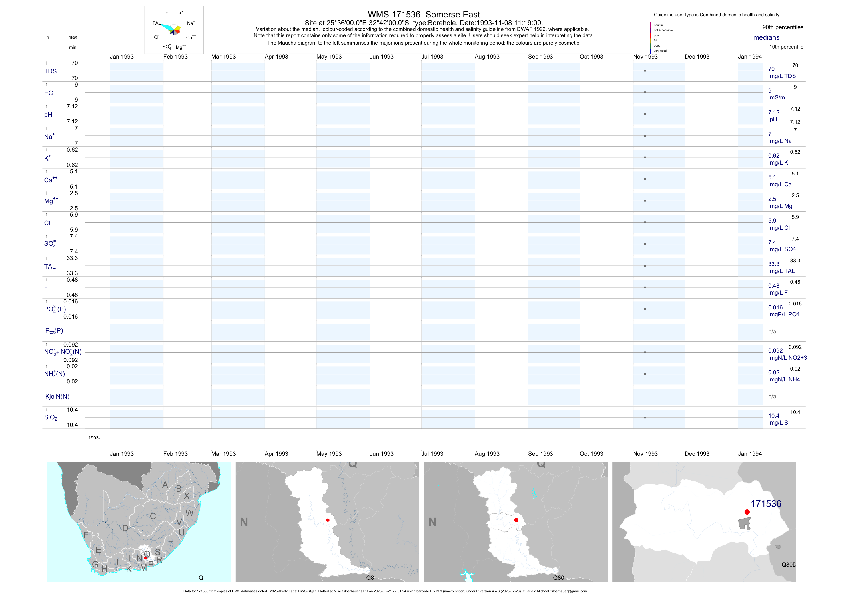 | Q93 171155 | plot | data | Coombsville | Borehole | 1 | 1993-03-24 | 1993-03-24 | 21 | 171155 | -33.31444 | 26.80000 |