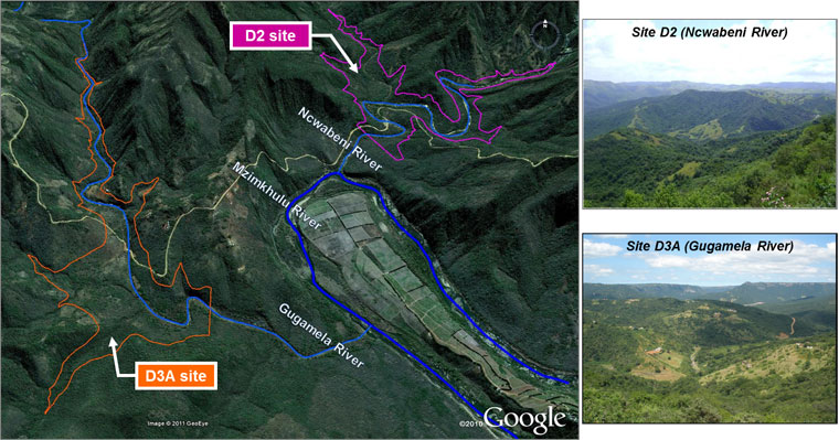 An OCS dam on either the Ncwabeni River (site D2) or Gugamela River (site D3A);
